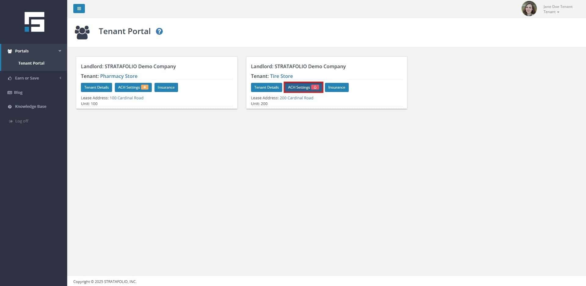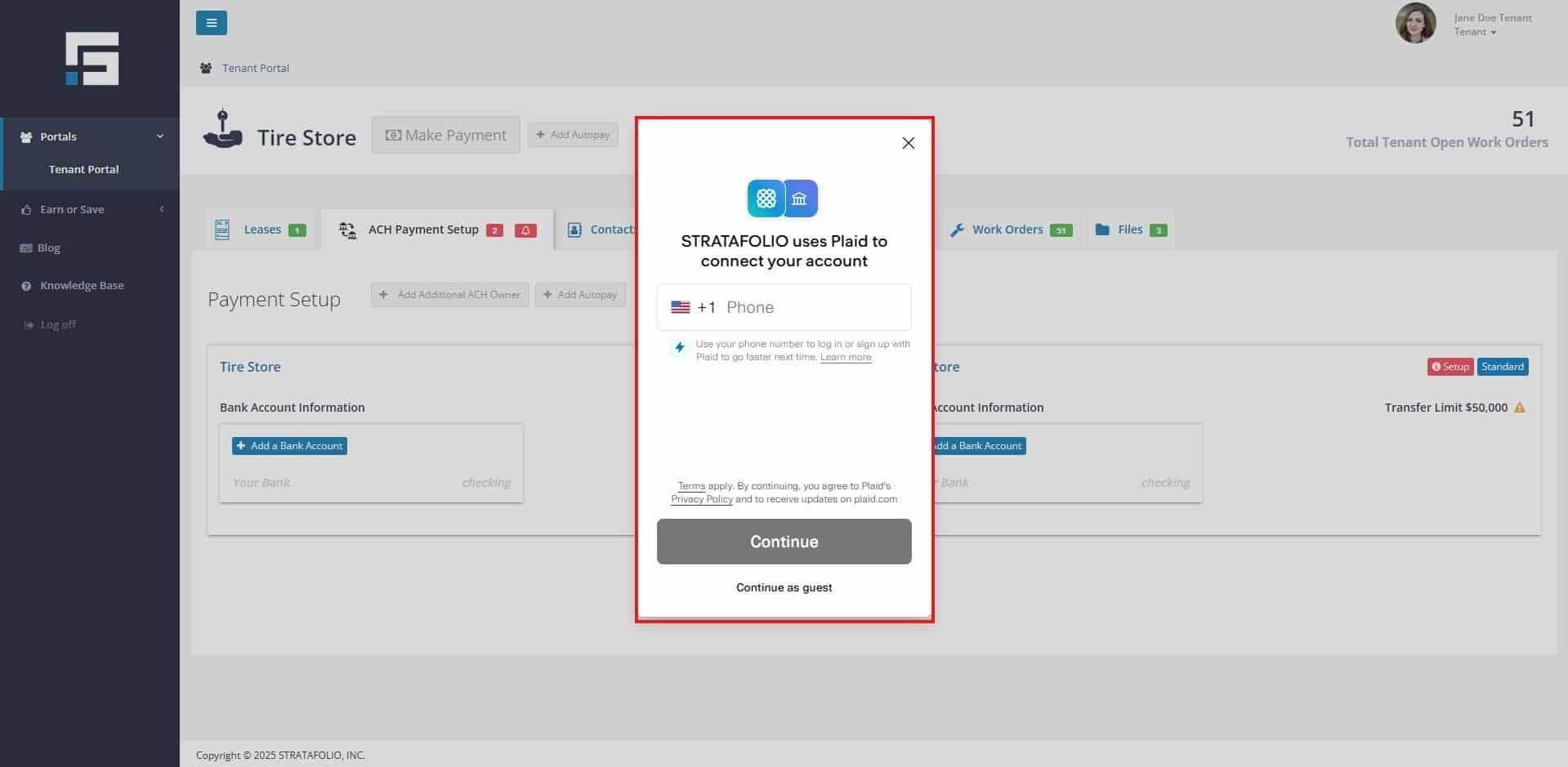 Wondering how to set up ACH payments? STRATAFOLIO’s tenant portal is built to make things simple for everyone. Tenants can log in, check their balance, set up ACH rent payments, or send a maintenance request without having to jump through hoops. For landlords, it is just as easy. You will know who’s paid, track occupancy, and keep an eye on overall property performance, all in real time. It’s clean, intuitive, and saves everyone a ton of back-and-forth.