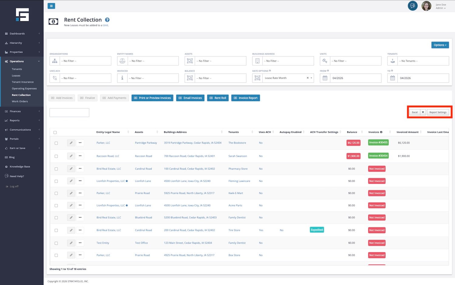 No matter how you add the invoice (using either STRATAFOLIO or QuickBooks), the invoice information will sync to STRATAFOLIO and can be viewed on the Rent Collection page.