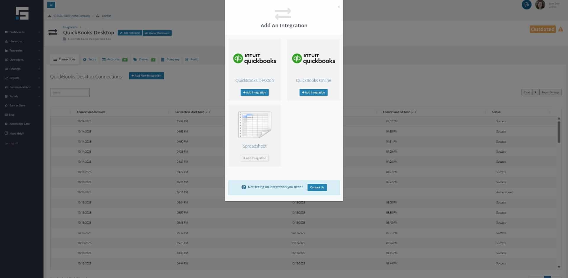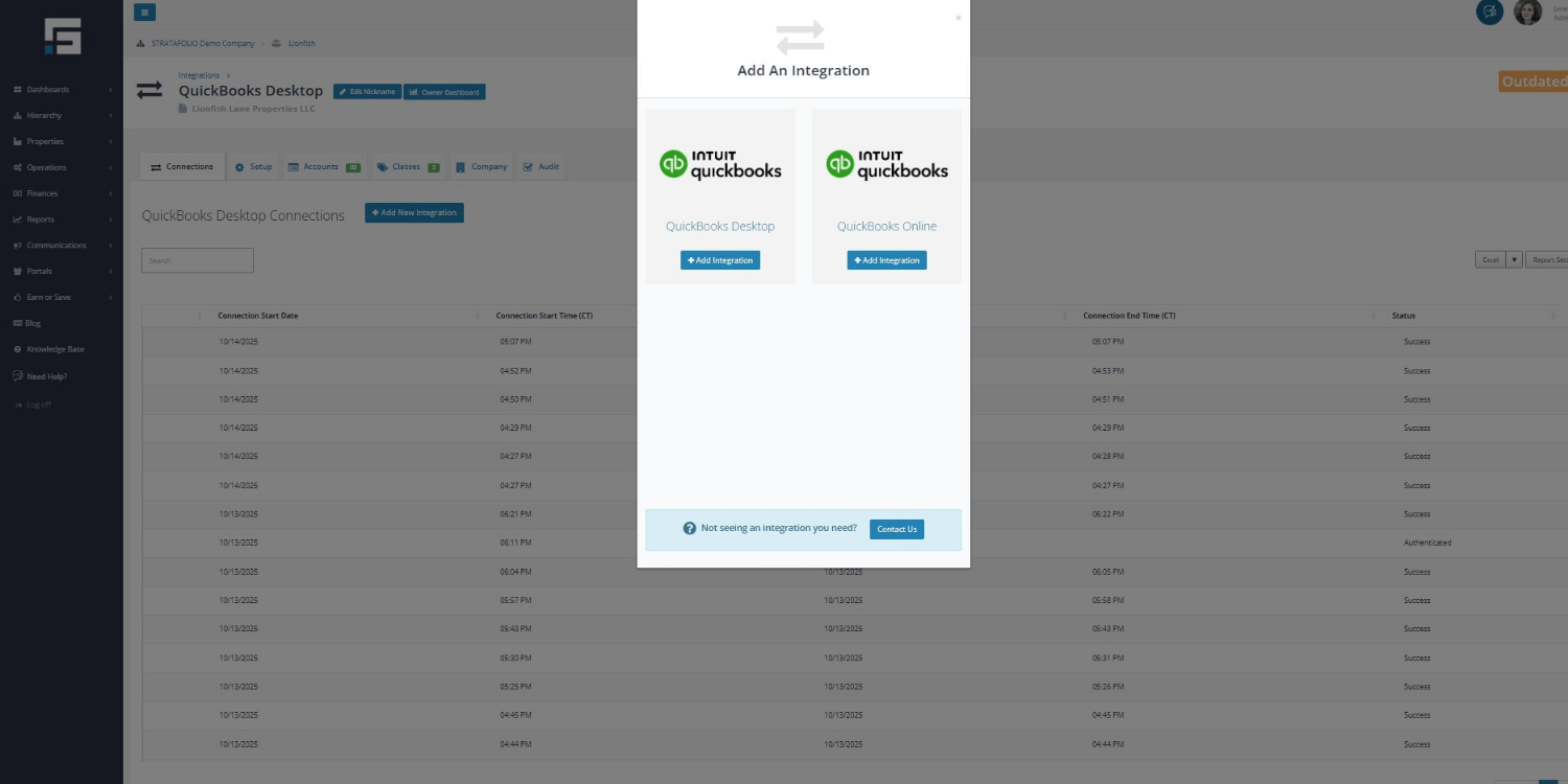 - Automatic two-way data syncing between STRATAFOLIO and QuickBooks ensures that every rent payment, expense, and journal entry updates across both platforms in real time.