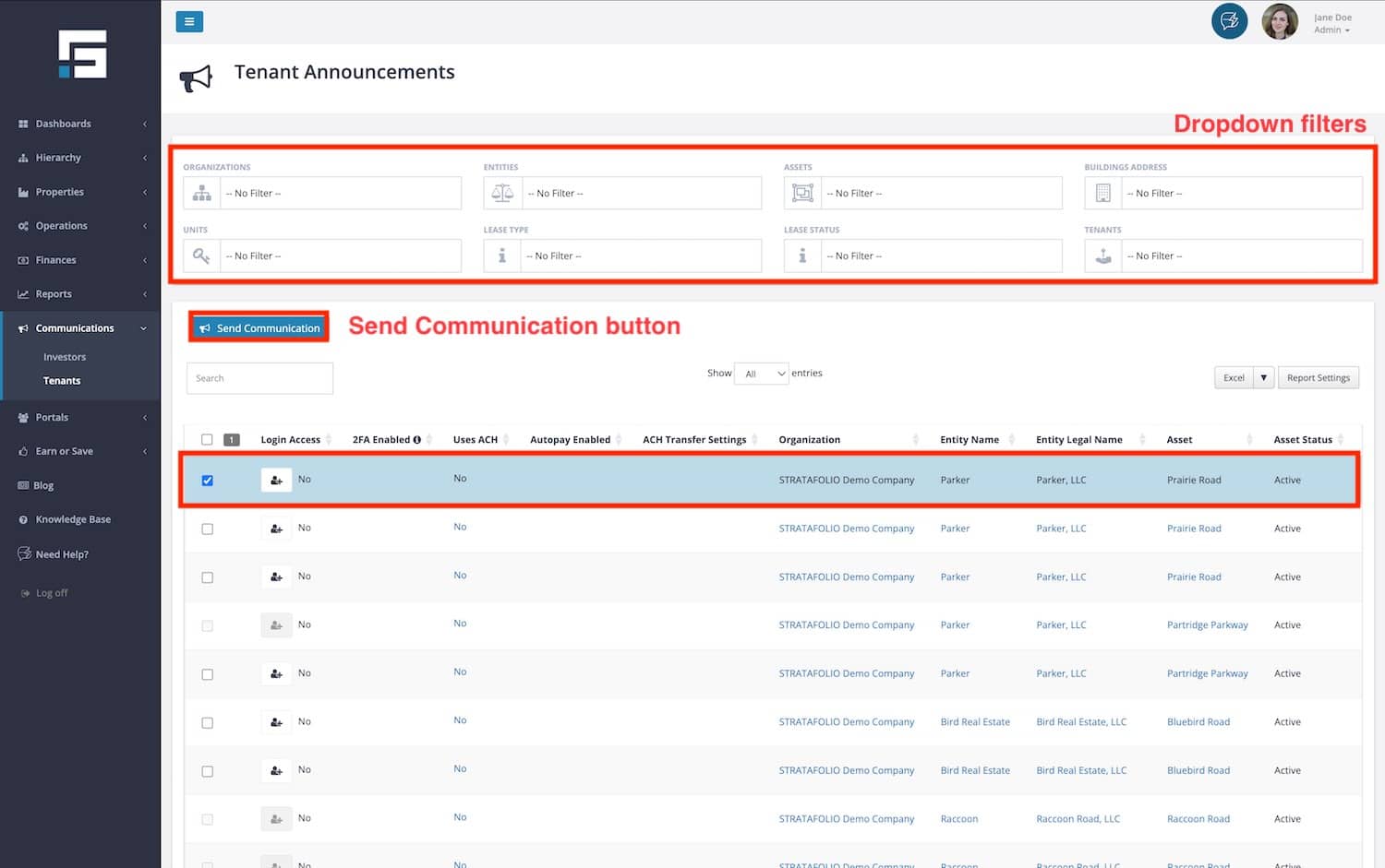 - Efficiency: Email multiple tenants across entities, assets, or units at once.