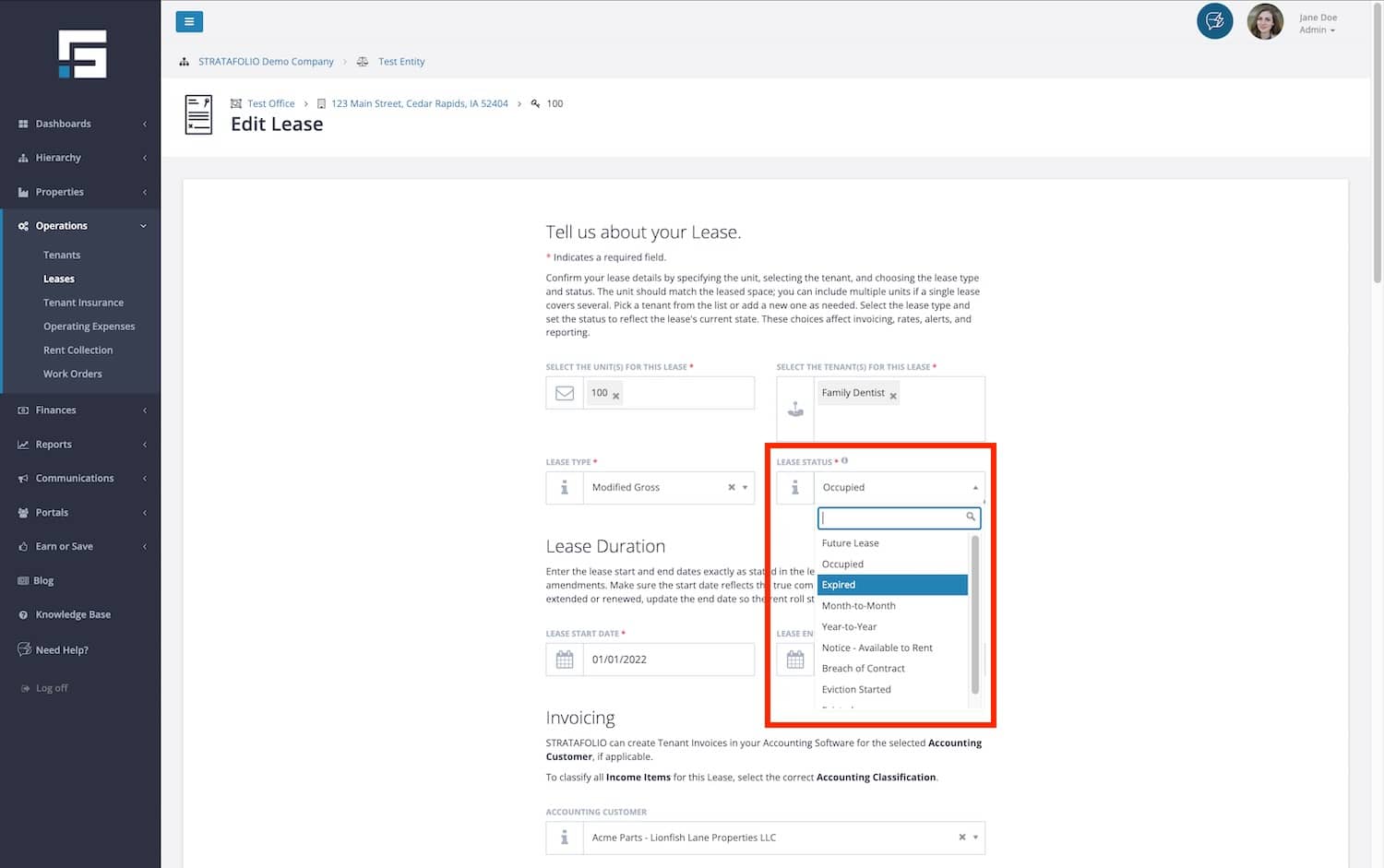 Did one of your leases recently expire unexpectedly? Would you like to know how to close out an expired lease to make room for a new lease in the unit? STRATAFOLIO will automatically expire a lease for you when the Lease End Date is reached. If you need to expire the lease before that, please follow the steps below.
