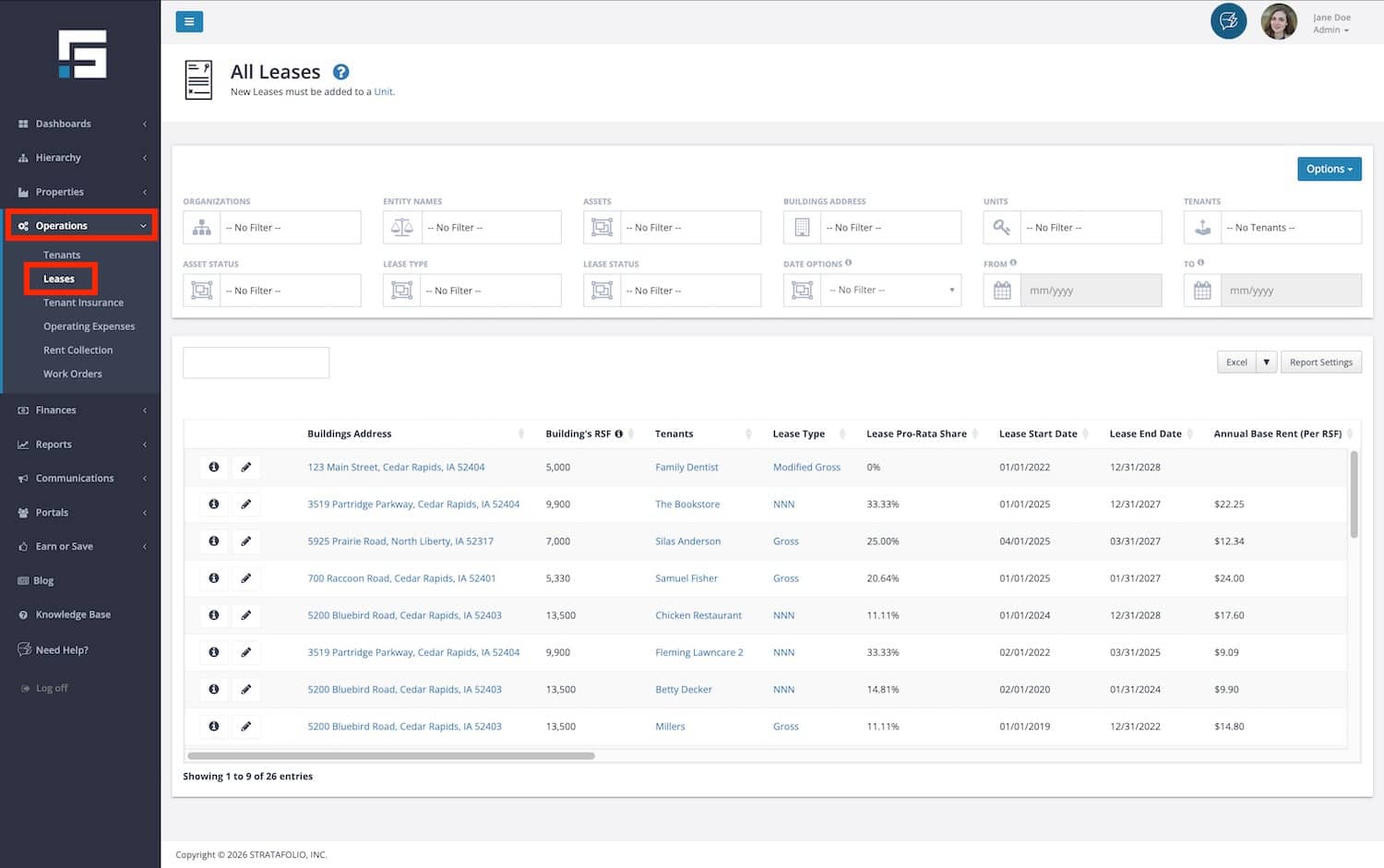 NOTE: If your tenant renews with similar lease terms, update their current lease in the STRATAFOLIO. A new lease is not needed. Please follow the instructions for How to Input a Lease Extension/Amendment. If your lease has changed from gross to NNN, the Onboarding team suggests closing the existing lease and entering a new lease for the tenant.