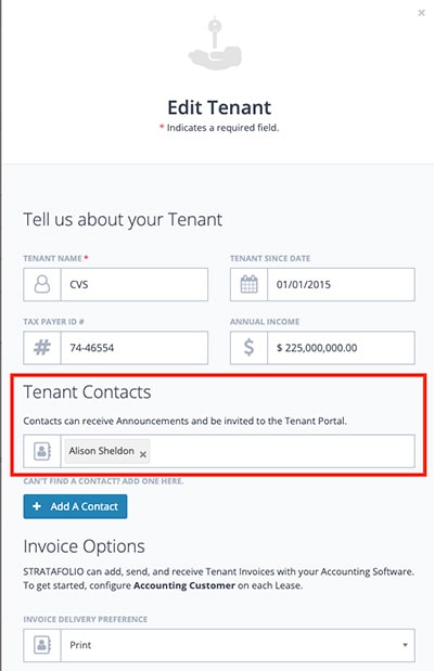 In STRATAFOLIO, records must be managed carefully to keep your portfolio data accurate. Certain records, like contacts, are tied to other parts of the system (such as tenants). Before deleting a record, make sure you remove its associations first.