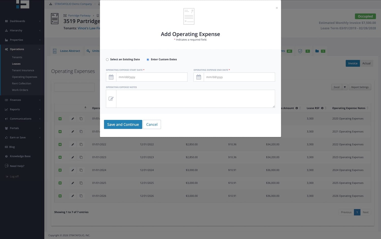 NOTE: Please note that STRATAFOLIO runs on a cash basis. Any expense posted outside of the operating expense dates will not be included in the CAM Reconciliation Report.