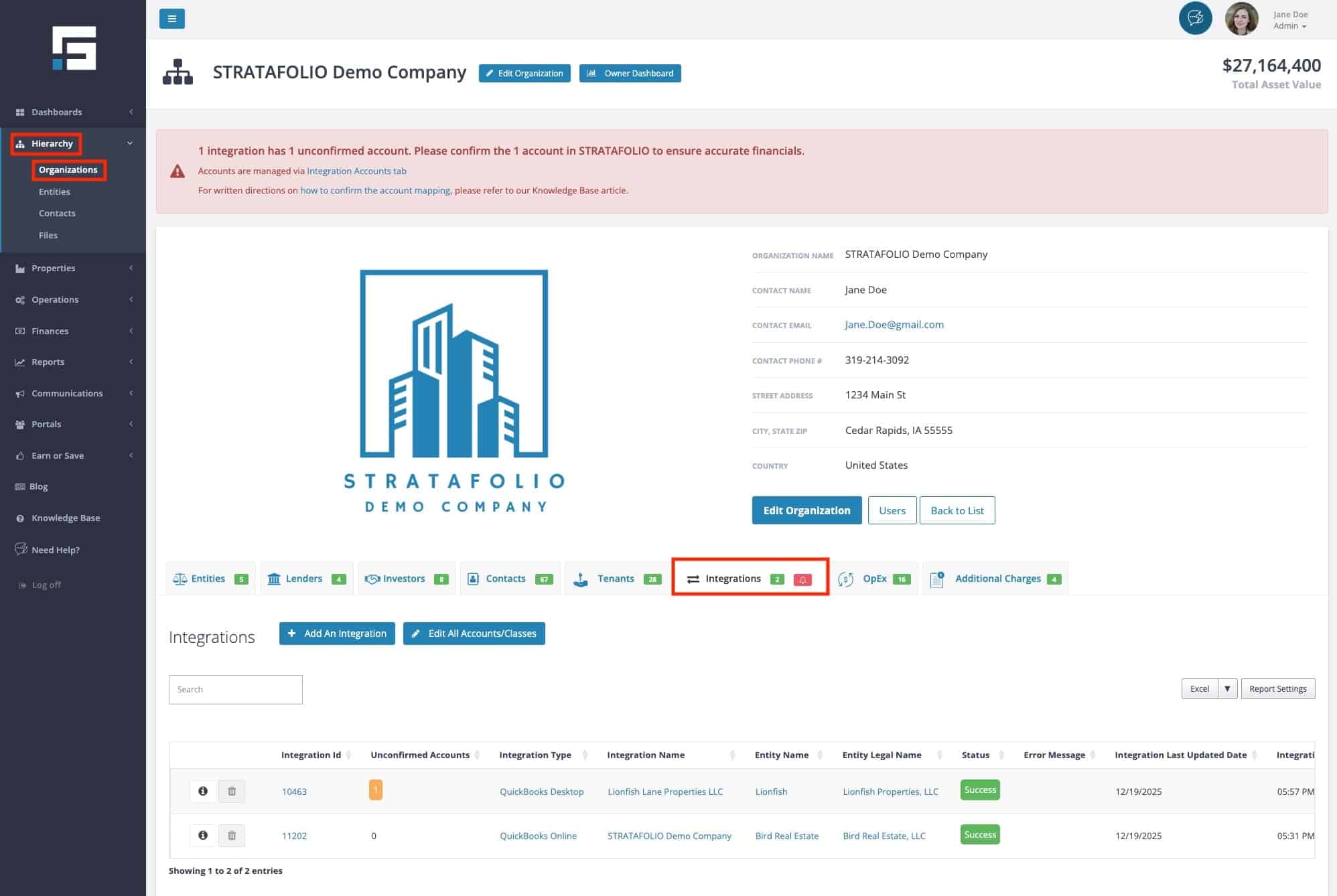 STRATAFOLIO connects to QuickBooks to keep your financial data synced and up to date. All QuickBooks integration settings are managed at the Organization level so they apply consistently across your hierarchy.