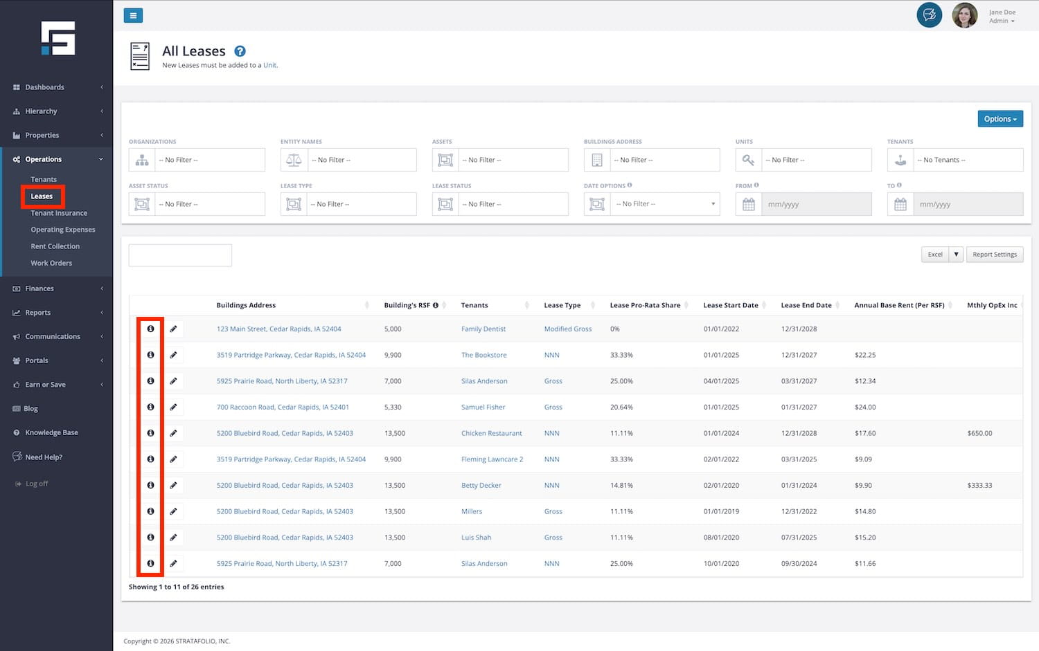 You can generate a portfolio-wide security deposit report directly from the Leases Index Page by enabling the correct columns in Report Settings.