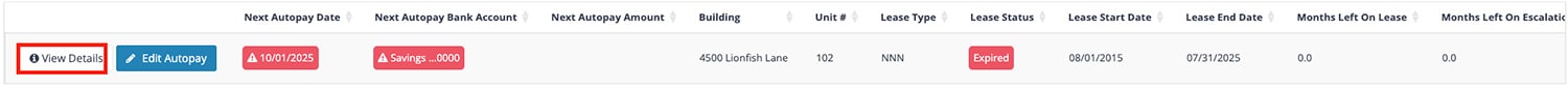 First, log into your STRATAFOLIO Tenant Portal account and click on the View Details button. Note: If you have more than one lease, select which lease to add/view files.