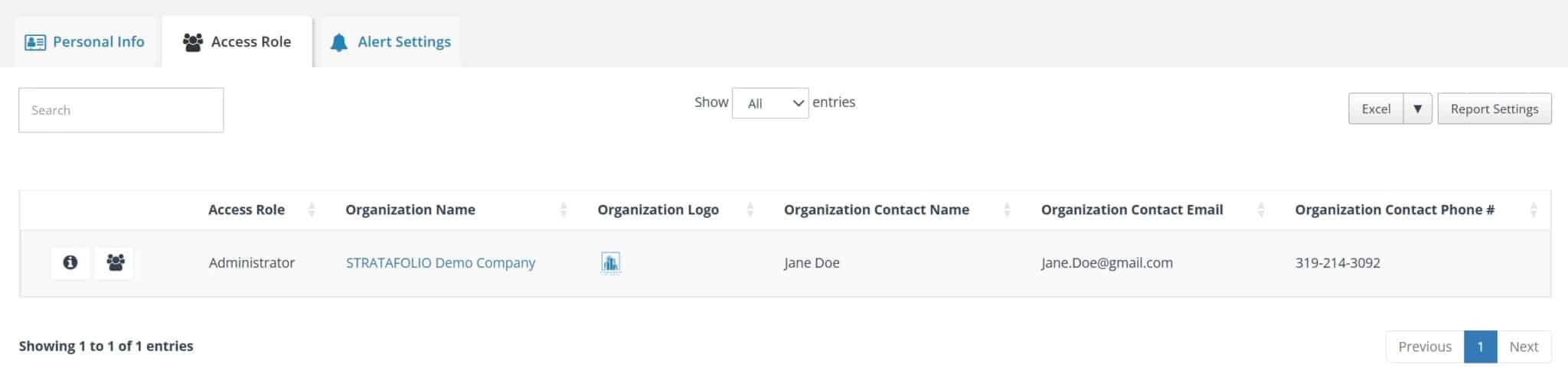 This helps you verify your permissions across multiple organizations connected to STRATAFOLIO.