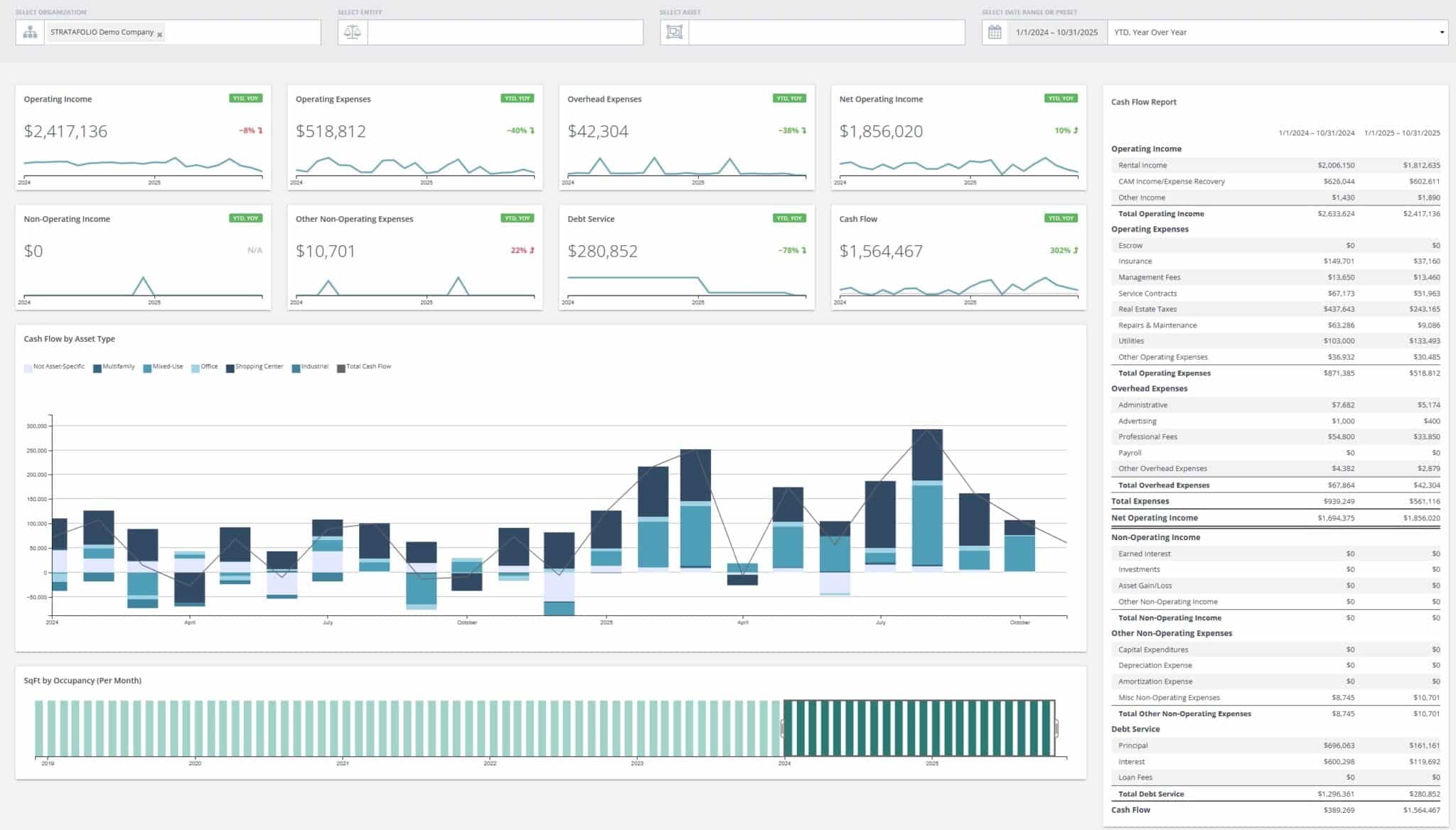 - Cash Flow by Asset Type or Entity: See income distribution by property class or organization.